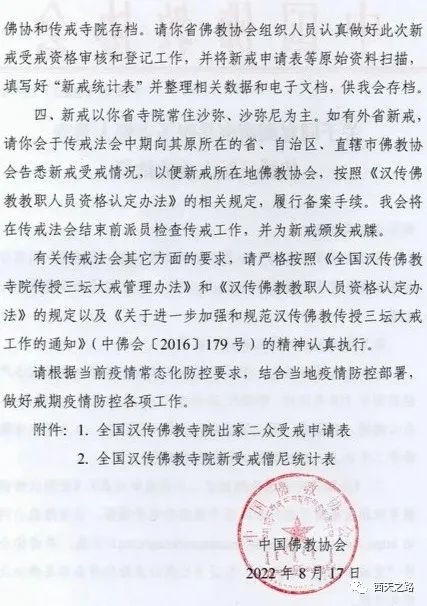 壬寅年嵩山少林寺传授三坛大戒法会补充通知(二)